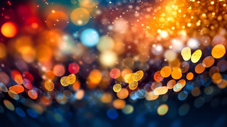 Vibrant bokeh lights of various colors fill the dark background, creating a magical and festive ambiance, perfect for celebrations or special events at night.