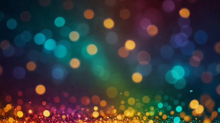 Immerse yourself in the dreamy ambiance of multicolor bokeh with shimmering blurry lights, falling rainbow confetti, and a soft blurred backdrop. A visual celebration of vibrant, festive charm.