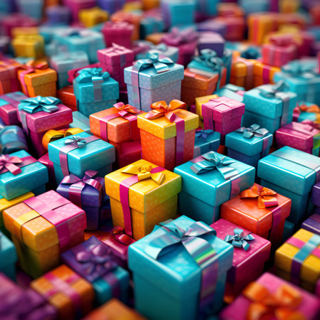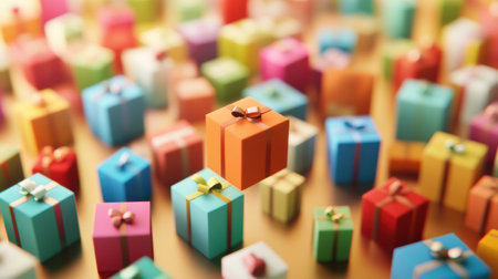 An AI generated image of festive gift boxes in various colors