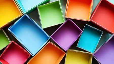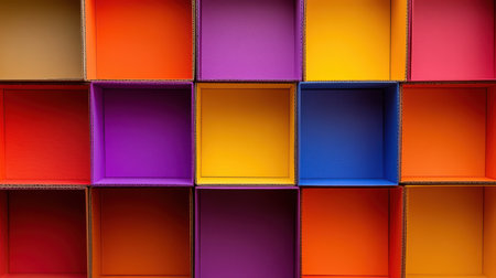 This image showcases a collection of colorful square boxes arranged in an engaging design. The vibrant hues and geometric placement inspire creativity in various artistic projects.