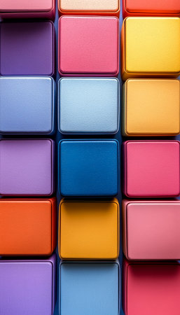 An organized array of vivid, multicolored blocks forms a striking pattern, inspiring vibrant displays and innovative design ideas.