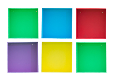 Empty colorful shelves isolated on white background.