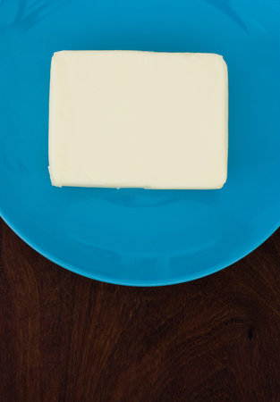 briquette of butter on a blue plate