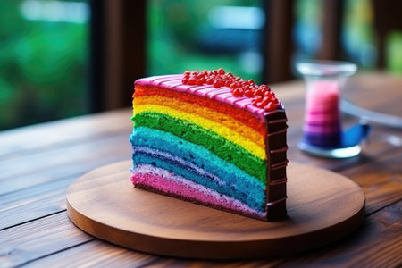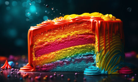 slice of cake, decorated with vibrant colors and intricate details, created with generative ai