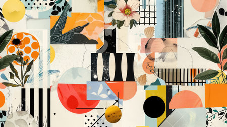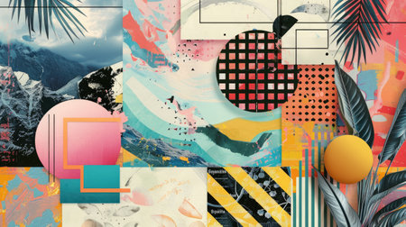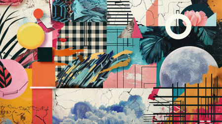 Abstract Geometric Collage with Colorful Patterns and Shapes.
