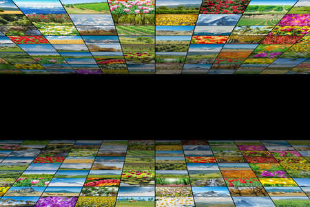 A large screen with many different images on it. Media tv video technology concept