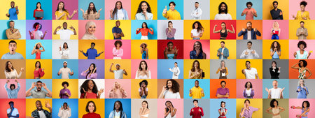Diverse group of people showcasing expressions in a colorful collage