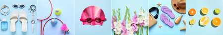 Stylish summer collage on blue background