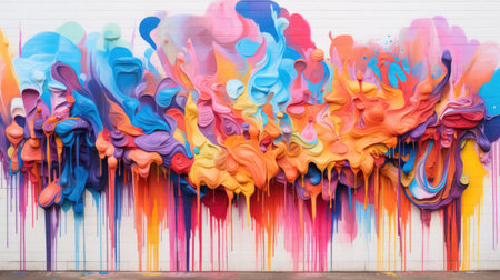 Brightly colored ai graffiti adds a modern artistic flair to an urban wall in a bustling city setting.