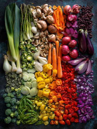 Vibrant colorful vegetables arranged beautifully, showcasing fresh produce for healthy eating and culinary inspiration.