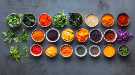 dry seasonings. Top view of various conditions. Generative AI