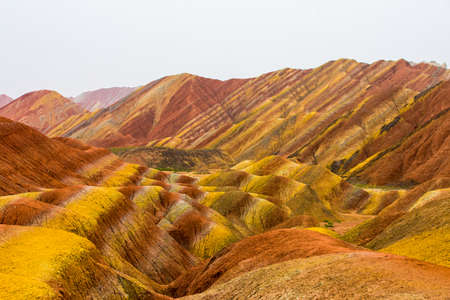 Colorful landscape of Rainbow mountains at Zhangye Danxia national geopark, Gansu province, China.