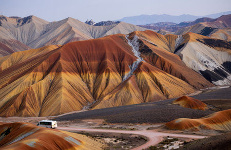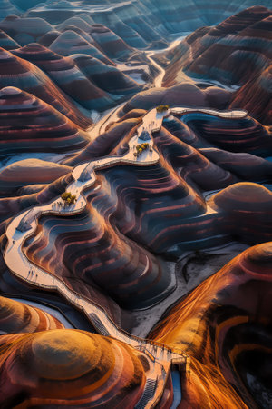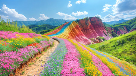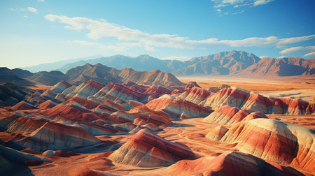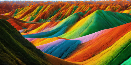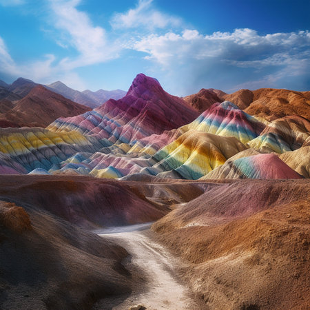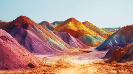 Explore a stunning landscape featuring vibrant striped mountains in an array of colors. This natural wonder showcases the beauty of Earth's geology and unique formations.