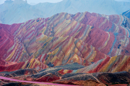 The beautiful Rainbow mountains at the Zhangye Danxia landform geological park in Gansu, China