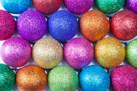 rows of colourful christmas balls as background