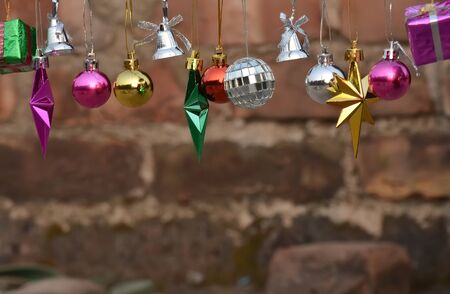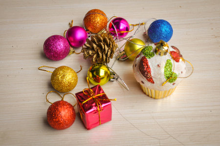 Close-up bright colorful New Year decoration toys