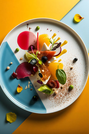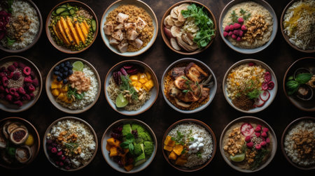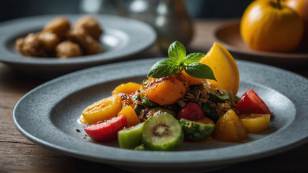 AI Generated. Delicious vegetarian dishes , Bright and appetizing with fruits
