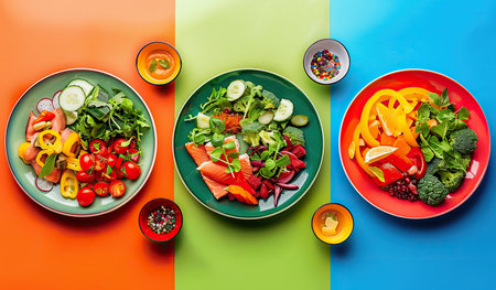 Collage of different salads, top view. Healthy food concept. generative ai