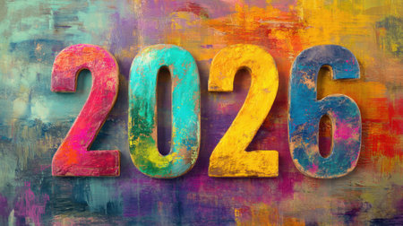 This vibrant image features the numbers 2026 in a colorful and artistic style, set against a textured abstract background. Perfect for various creative projects!
