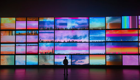 Large video wall displays various colorful videos, creating a vibrant and dynamic visual experience