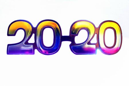 2020 shiny colored numbers isolated on white background. Happy New year to 2020.