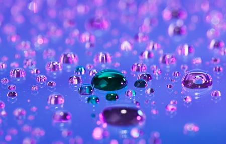 colored water drops macro close up