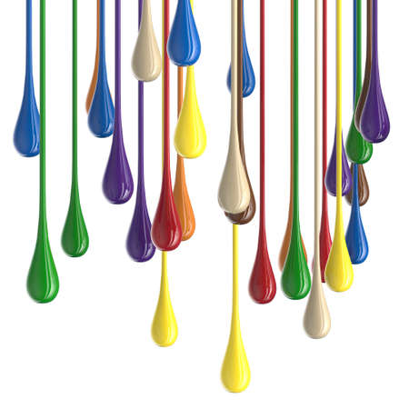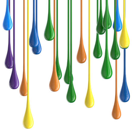 3D multicolor colorful glossy paint drop blobs isolated on white. 3D rendering