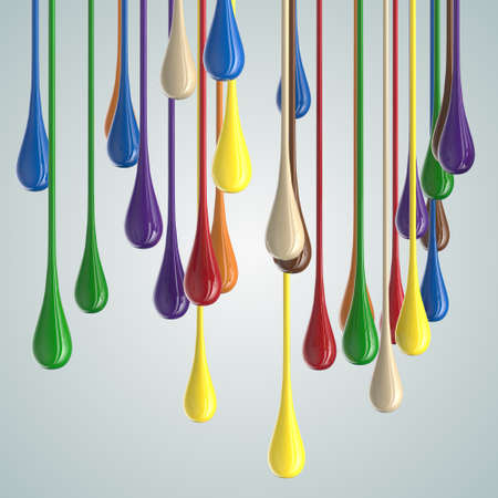 3D color glossy paint drop blobs isolated on white. 3D rendering