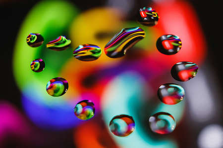 Macro of colorful abstract water drop creations.