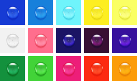 Bright abstract colorful background with transparent drops and bubbles
