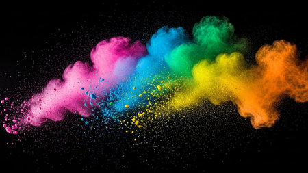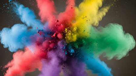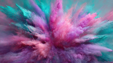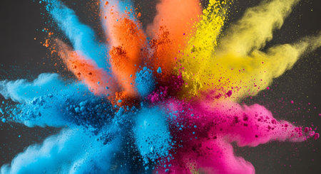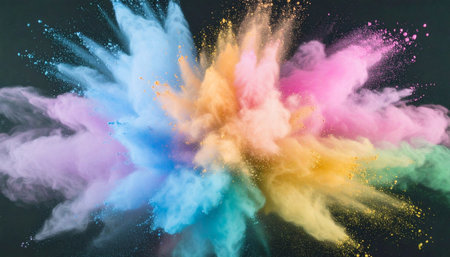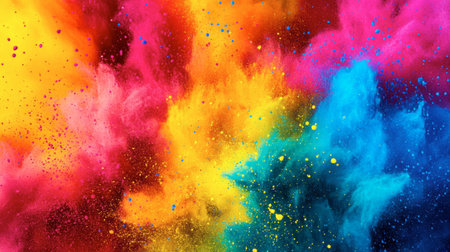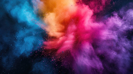 A stunning explosion of vibrant colored powder creates an abstract and dynamic backdrop, perfect for projects needing a bright and energetic touch.