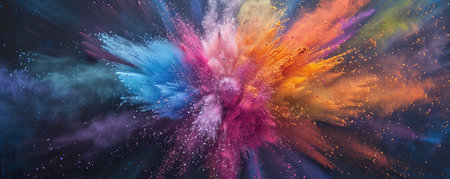 Colorful explosion of powder against dark background, vibrant burst of colors. Abstract art and creative concept
