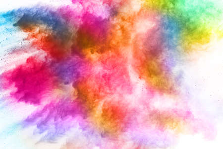 Abstract colorful powder explosion on white background. Colorful dust explode.