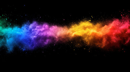 A stunning explosion of vibrant colors creates an artistic visual impact against a dark background, perfect for conveying energy and creativity.