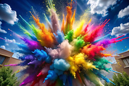 Colorful powder paint rainbow bomb exploding splash AI Generated Image