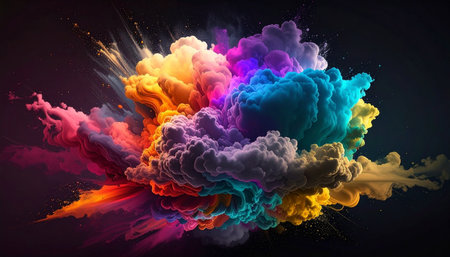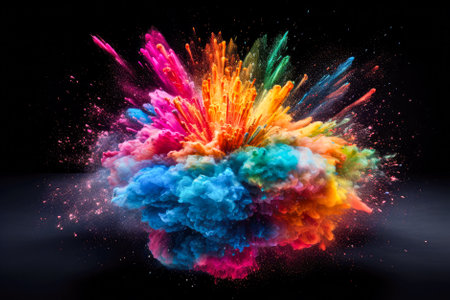 A vibrant burst of colorful powder explodes against a dark background