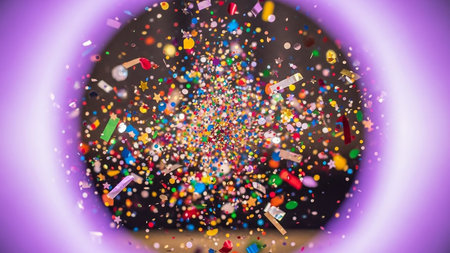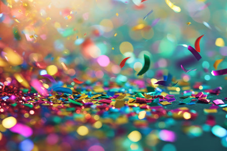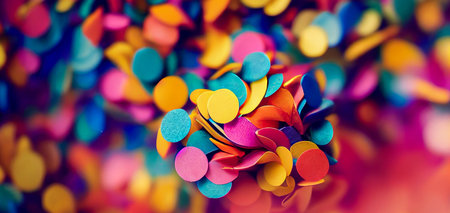 close-up of colorful confetti, with dramatic effect, created with generative ai