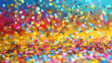 Vibrant background with confetti and glitter falling in colorful hues, creating an enchanting atmosphere for festive events or party decor. --ar 11:5 --v 6.1 Job ID: cded9bd4-00af-4dba-9fb7-74848c58bba0