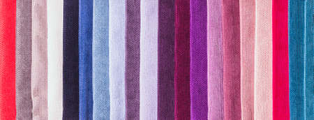 Multi-colored strips of fabric, samples of textile material. Soft fleecy fleece, a palette of color shades. Backdrop wallpaper background