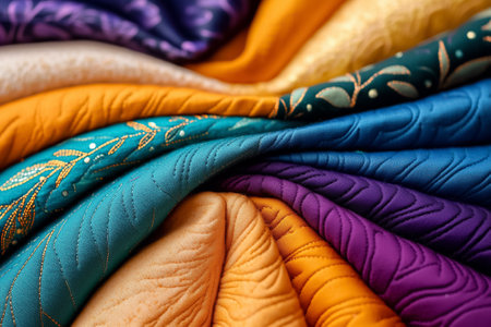 Vibrant Hues of Fashion Close-Up of Colorful Fabrics Texture for Design and Sewing Projects.