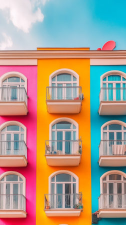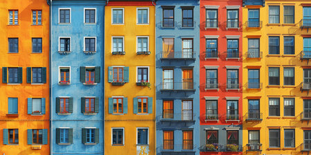 Vibrant Geometric Architecture: A Colorful Cityscape with Ornamented Windows