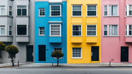 Explore the stunning beauty of vibrant facades showcasing historic Victorian architecture. These colorful buildings present an artistic blend of design and heritage in an urban environment.