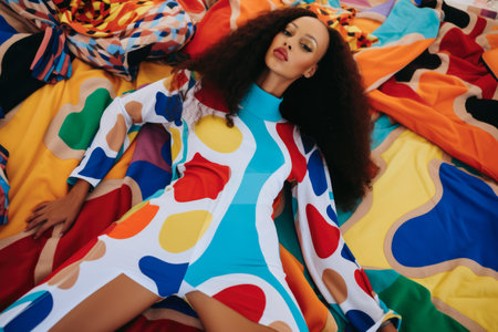 Fashion model in vibrant suit against colorful background