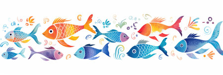 Bright colored fishes, abstract bright cheerful background. horizontal banner