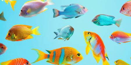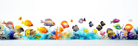 Tropical Paradise: A Vibrant Collection of Colorful Fishes - Transparent Panoramic Background - Perfect for Fish Headers and PNG Web Banners (AR 3:2)
