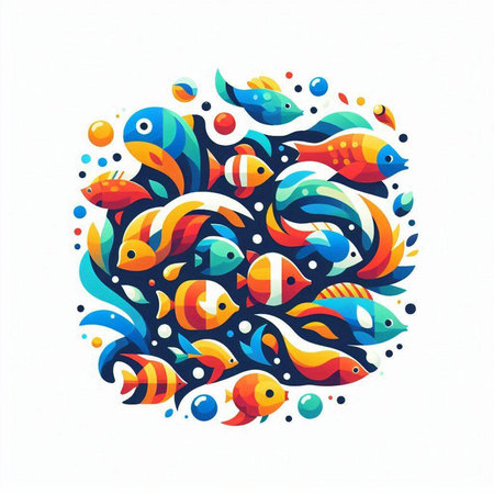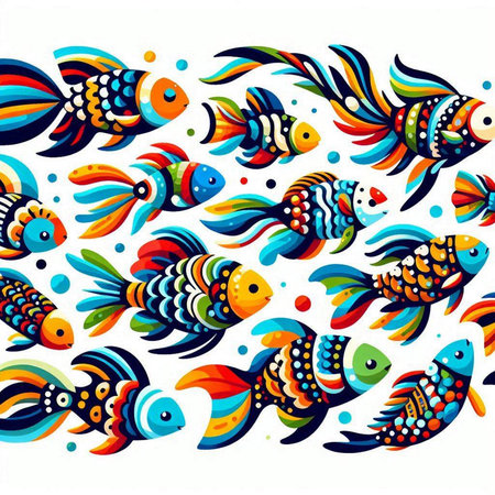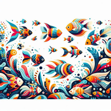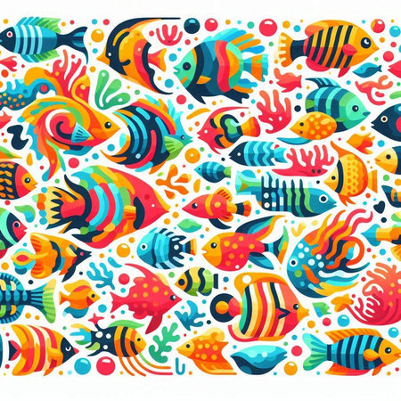 Colorful fish background. Shoal of fish pattern. Pop style modern art