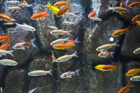 Various colored fish in beautiful tropical fresh water.