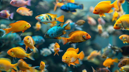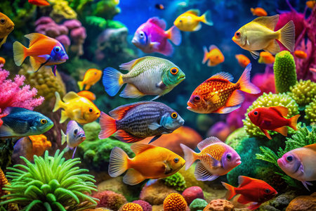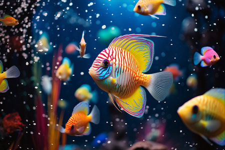 Vibrant Aquarium Fish: Colorful Tropical Fish Swimming in a Lush Underwater Scene