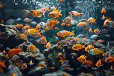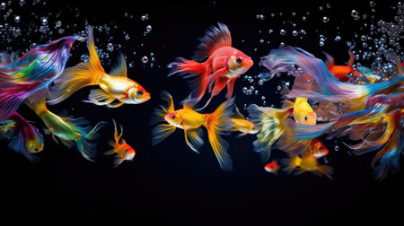 Group of colorful fish swimming in an aquarium. Generative AI