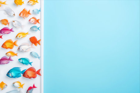 Aquatic Oasis: Captivating Aquarium Fish Mock-Up Unveiling the Serene White Frame against the Azure Background featuring Copyspace --AR 3:2
